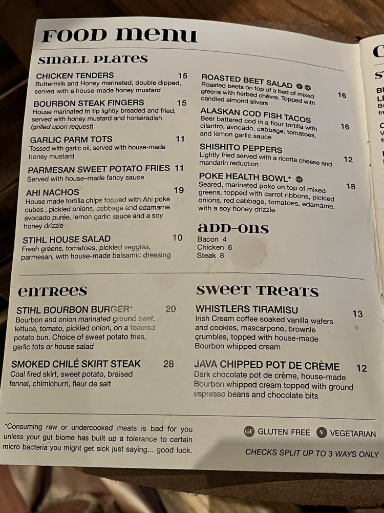 The Stihl Whiskey Bar Menu